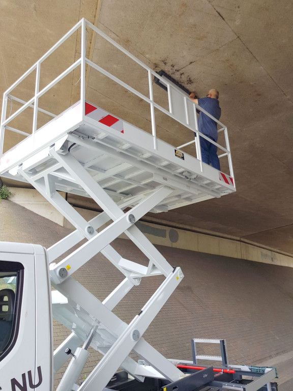 Looking for an efficient solution for working at height? Our scissor lift, mounted on a 3.5-ton vehicle, offers a working height of up to 6.3 meters and a maximum platform capacity of 300 kg. Ideal for infrastructure projects and maintenance tasks.